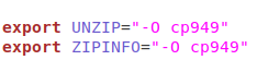 export UNZIP="-O cp949"