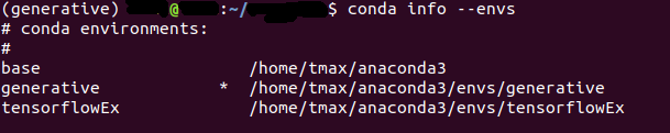 위의 명령어를 사용하시면 사진과 같이 만든 리스트가 나옵니다. 저는 generative라는 이름으로 만들고 사용 중이라 계정명 옆에 하얀 글씨로 (generative)라는 표시가 떴습니다.