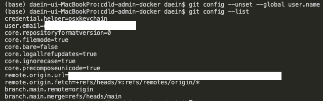 git config 설정을 지우는 명령어는 위와 같고