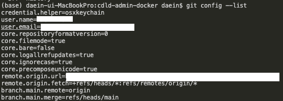 # ex) git config user.name dnfwlxo11, user.name으로 dnfwlxo11을 추가하는 예시